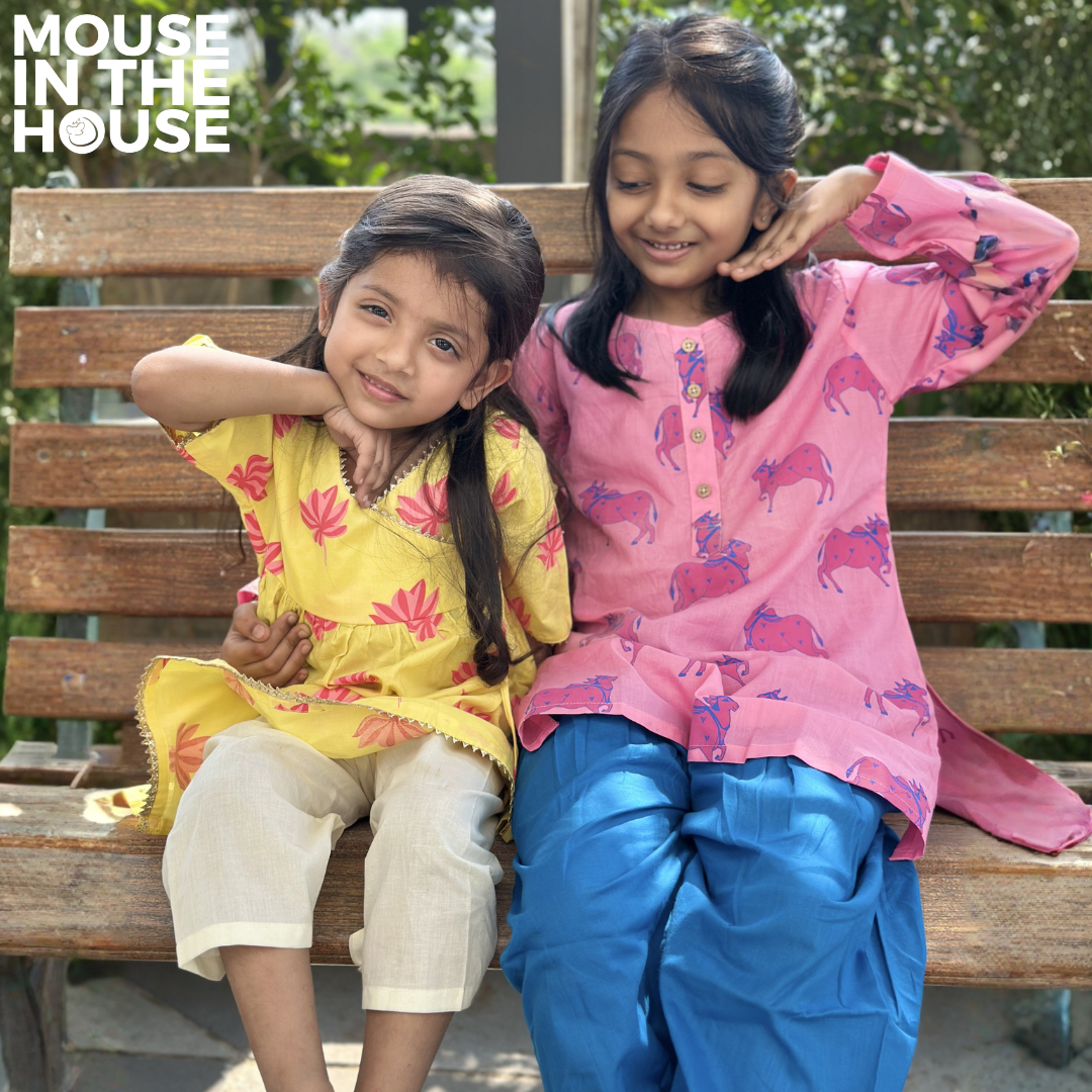 Mouse In The House is a play-friendly, unisex kids' wear brand designed for newborns to 10-year-olds. Inspired by stories, our hand-printed designs are crafted in India using Azo-free dyes on 100% cotton, ensuring softness and safety for little ones. Each product comes in recyclable cloth packaging, reflecting our commitment to sustainability. With unique prints and impeccable craftsmanship, our clothing is made to be loved, handed down through generations, or shared among siblings and friends. As parents ourselves, we prioritize simplicity, comfort, and adventure, creating styles that let kids be kids—full of curiosity, determination, and boundless imagination.