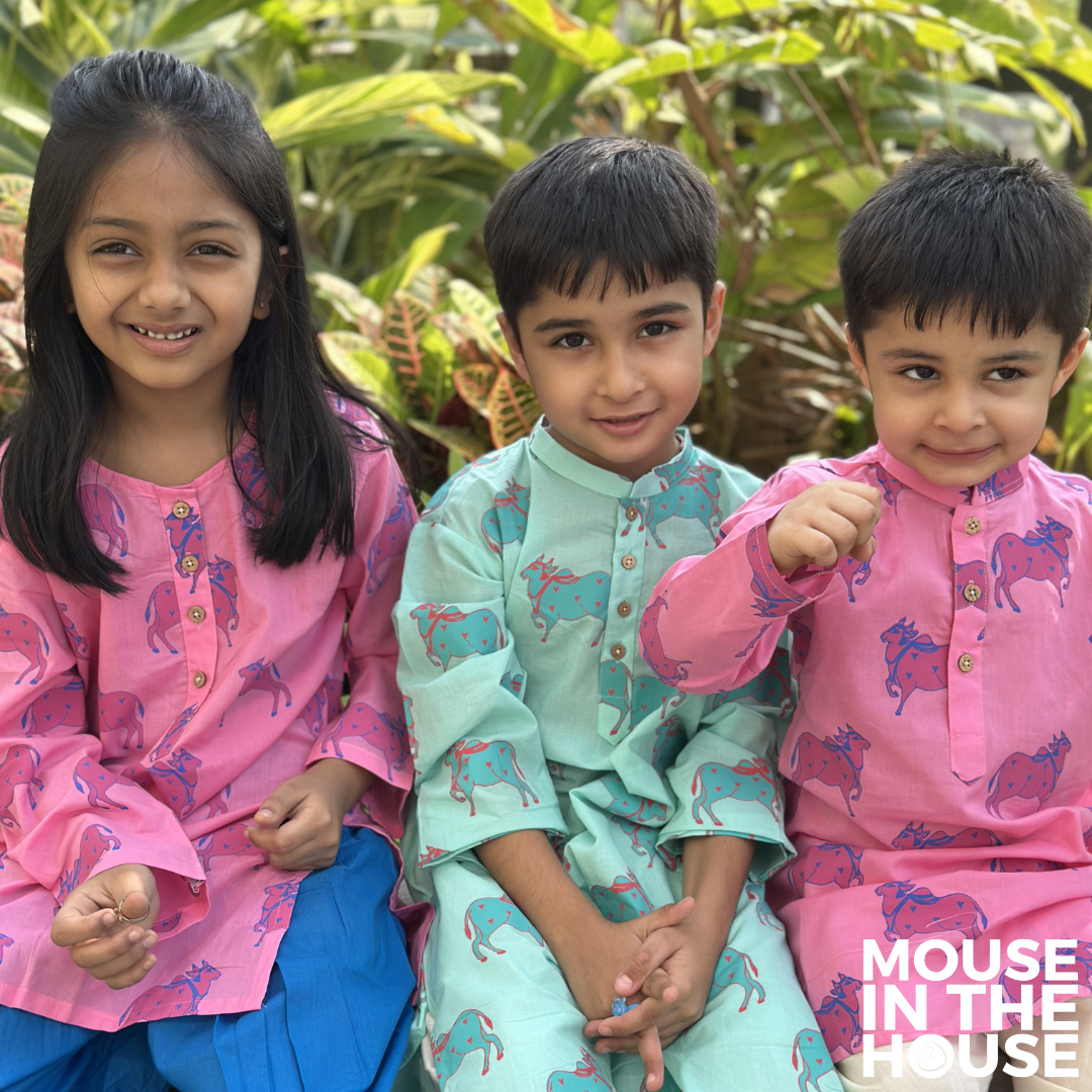Mouse In The House is a play-friendly, unisex kids' wear brand designed for newborns to 10-year-olds. Inspired by stories, our hand-printed designs are crafted in India using Azo-free dyes on 100% cotton, ensuring softness and safety for little ones. Each product comes in recyclable cloth packaging, reflecting our commitment to sustainability. With unique prints and impeccable craftsmanship, our clothing is made to be loved, handed down through generations, or shared among siblings and friends. As parents ourselves, we prioritize simplicity, comfort, and adventure, creating styles that let kids be kids—full of curiosity, determination, and boundless imagination.