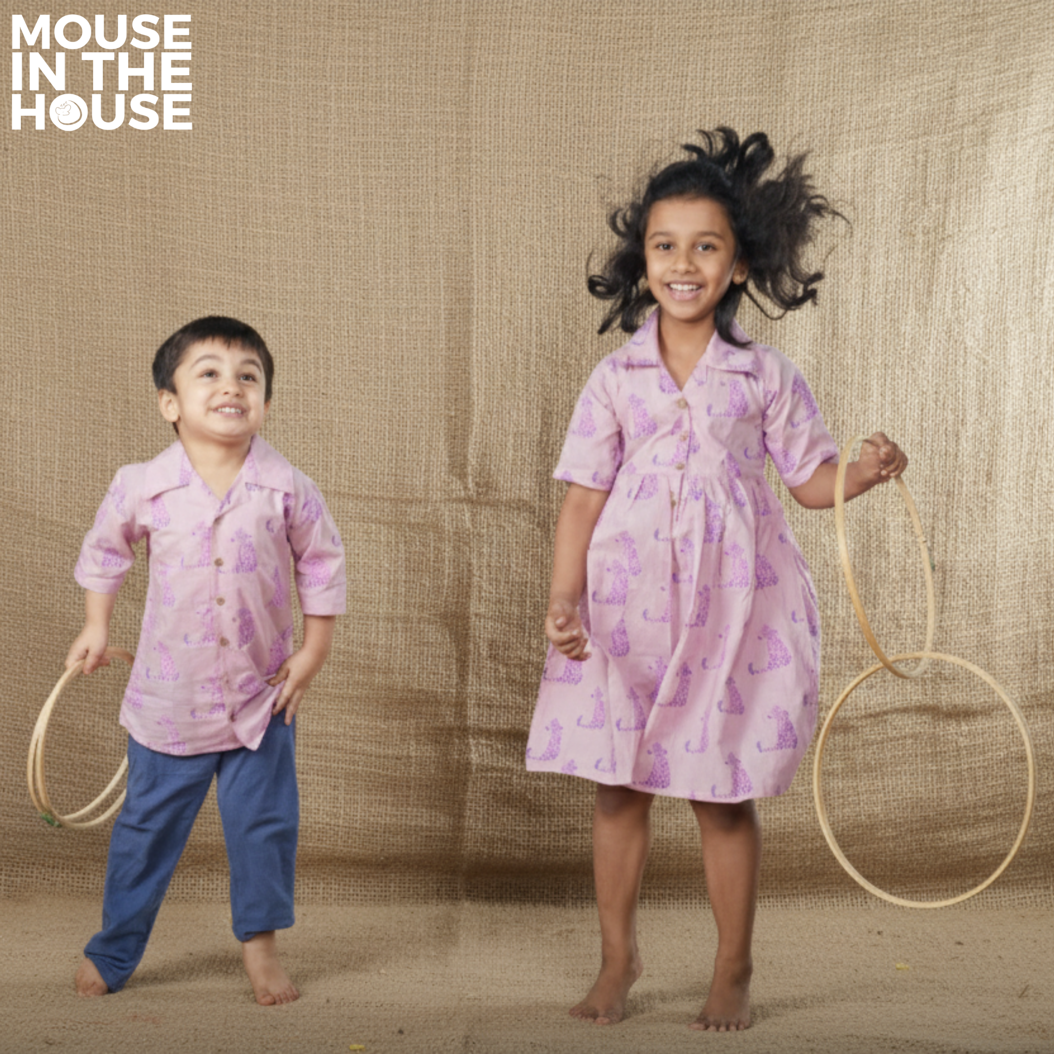 Mouse In The House is a play-friendly, unisex kids' wear brand designed for newborns to 10-year-olds. Inspired by stories, our hand-printed designs are crafted in India using Azo-free dyes on 100% cotton, ensuring softness and safety for little ones. Each product comes in recyclable cloth packaging, reflecting our commitment to sustainability. With unique prints and impeccable craftsmanship, our clothing is made to be loved, handed down through generations, or shared among siblings and friends. As parents ourselves, we prioritize simplicity, comfort, and adventure, creating styles that let kids be kids—full of curiosity, determination, and boundless imagination.