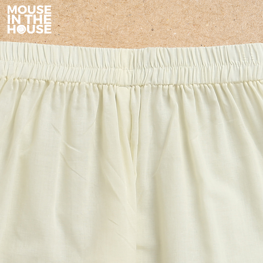 Comes with plain Beige Pajamas with soft elastic for added comfort
