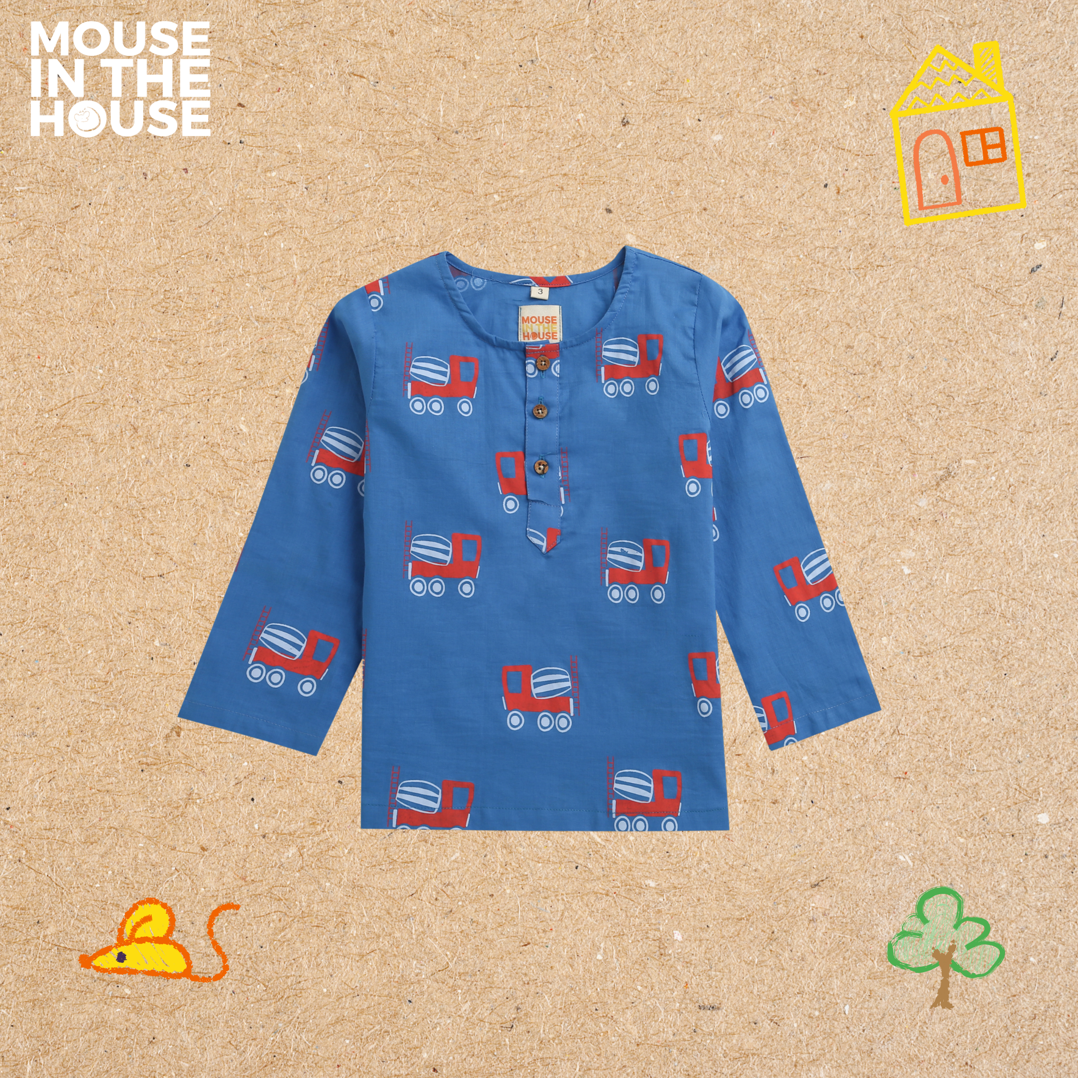 Let your little Mouseling dream big and play hard in the âCement Mixerâ print Nightdress! Designed for comfort from playtime to nap time, this breathable, lightweight cotton nightdress is soft as a second skin and perfect for all seasons.
