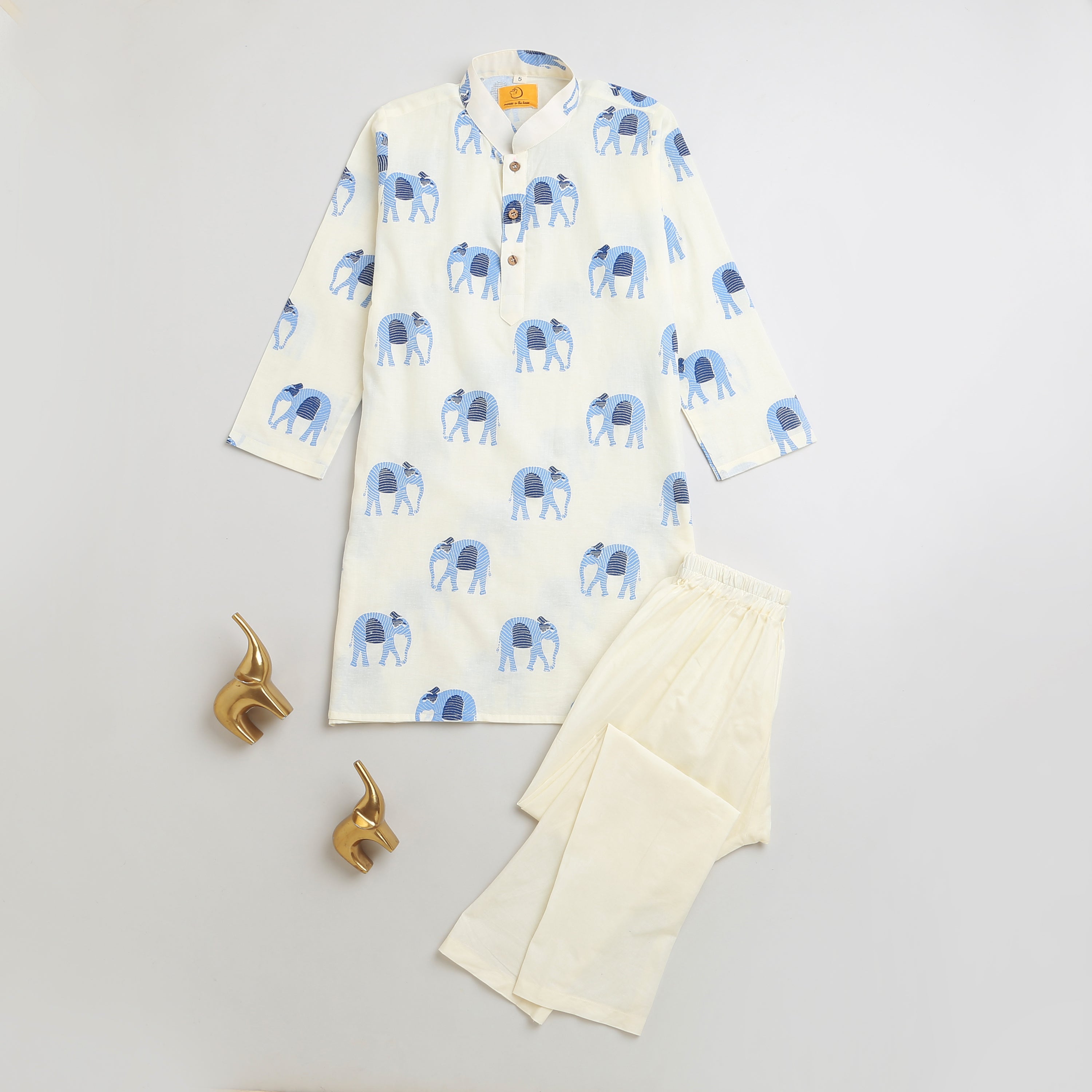 Rupa The Elephant (White)- Ethnic Wear Boys